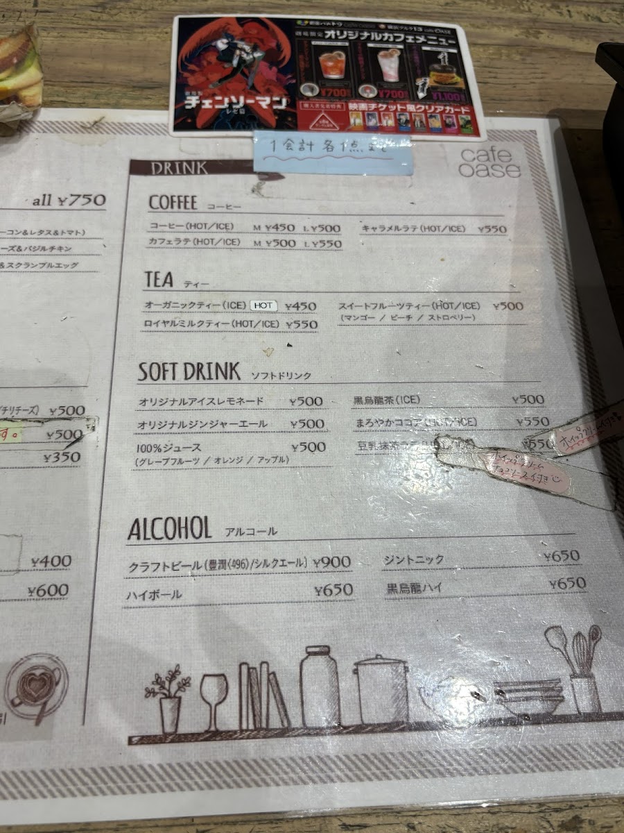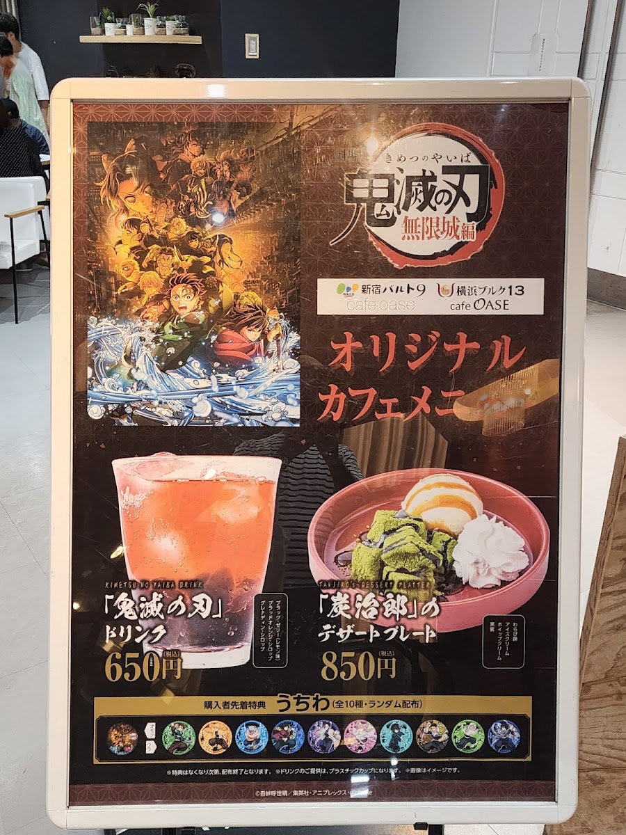 Welcome to Café Oase, nestled on the 10th floor of Shinjuku Wald 9, where the ambiance of a cinephile's paradise meets delectable cuisine. This charming café serves as an ideal spot for both filmgoers and casual diners alike. Currently, it features exciting Kimetsu no Yaiba collaboration menu items, including the delightful Tanjirou Dessert Plate, crafted with warabi mochi, ice cream, and black syrup, alongside refreshing drinks like the lemon-flavored black jelly.